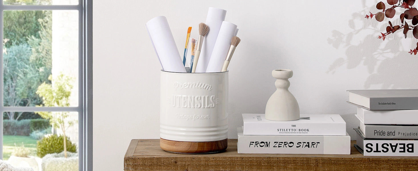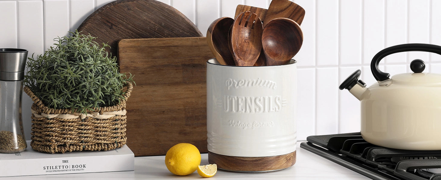 - The stable construction helps keep utensils upright and organized while reducing countertop clutter.