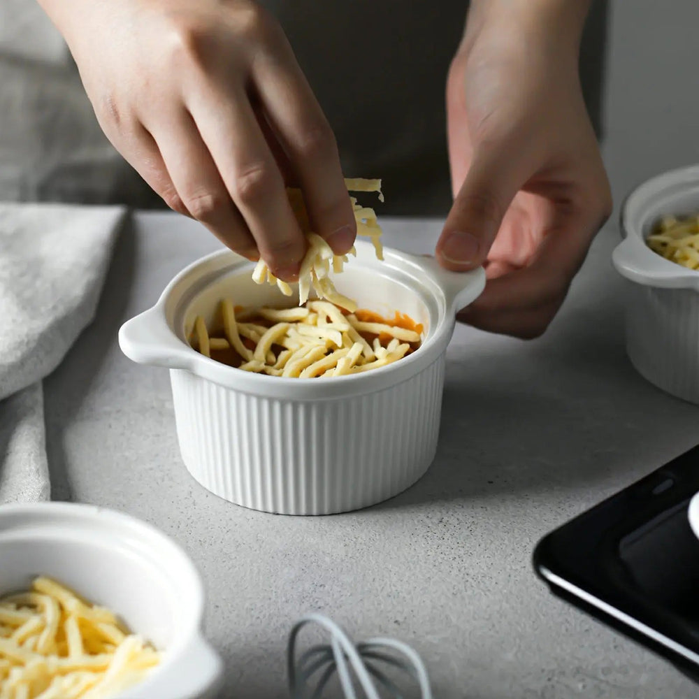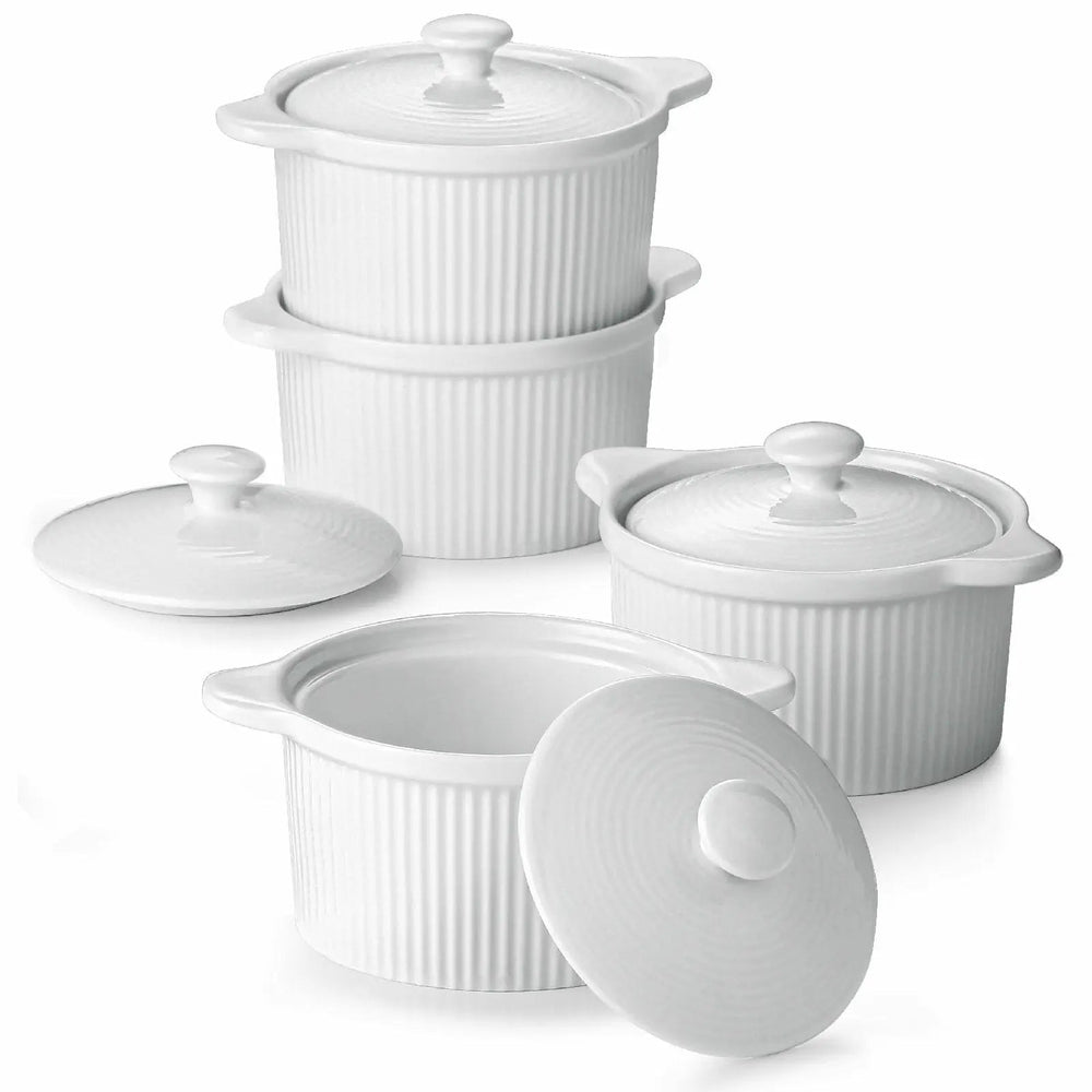Juego de 4 moldes para ramequines de cerámica blanca cubiertos