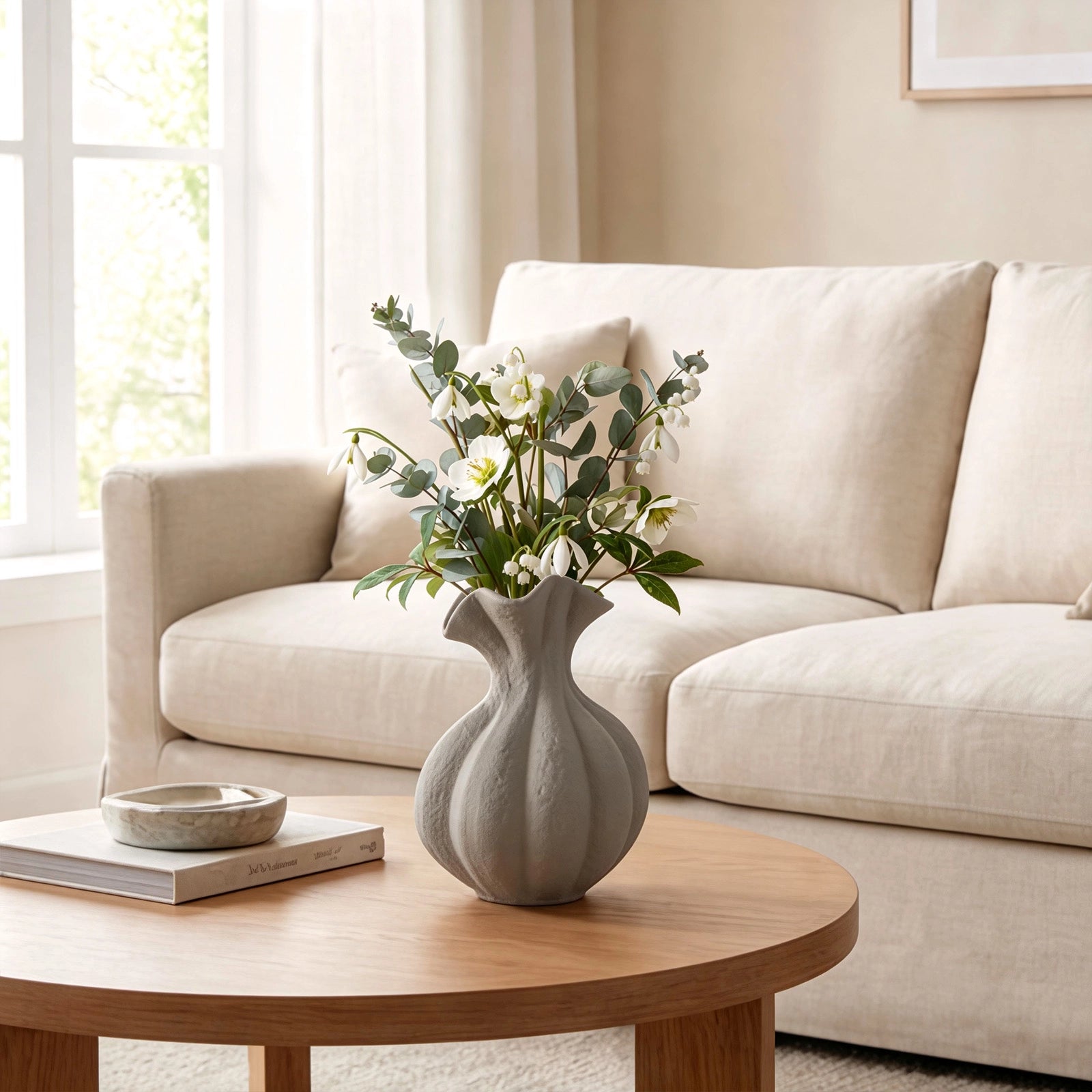 Crafted from durable ceramic with a fully waterproof interior, this vase is suitable for fresh flowers, dried stems, pampas grass, and faux arrangements. The soft gray finish and balanced proportions make it a versatile accent for dining tables, coffee tables, mantels, and shelf displays.
