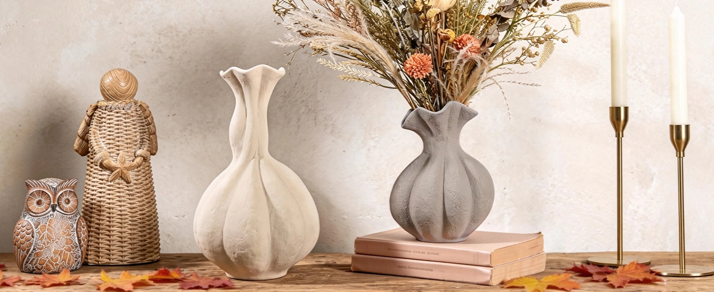 Add sculptural warmth and understated elegance to your home with DOWAN’s pumpkin neck vase. Designed with a softly rounded body, a narrow neck, and a refined handcrafted finish, this decorative vase brings modern farmhouse charm to shelves, tables, entryways, and everyday styled spaces.
